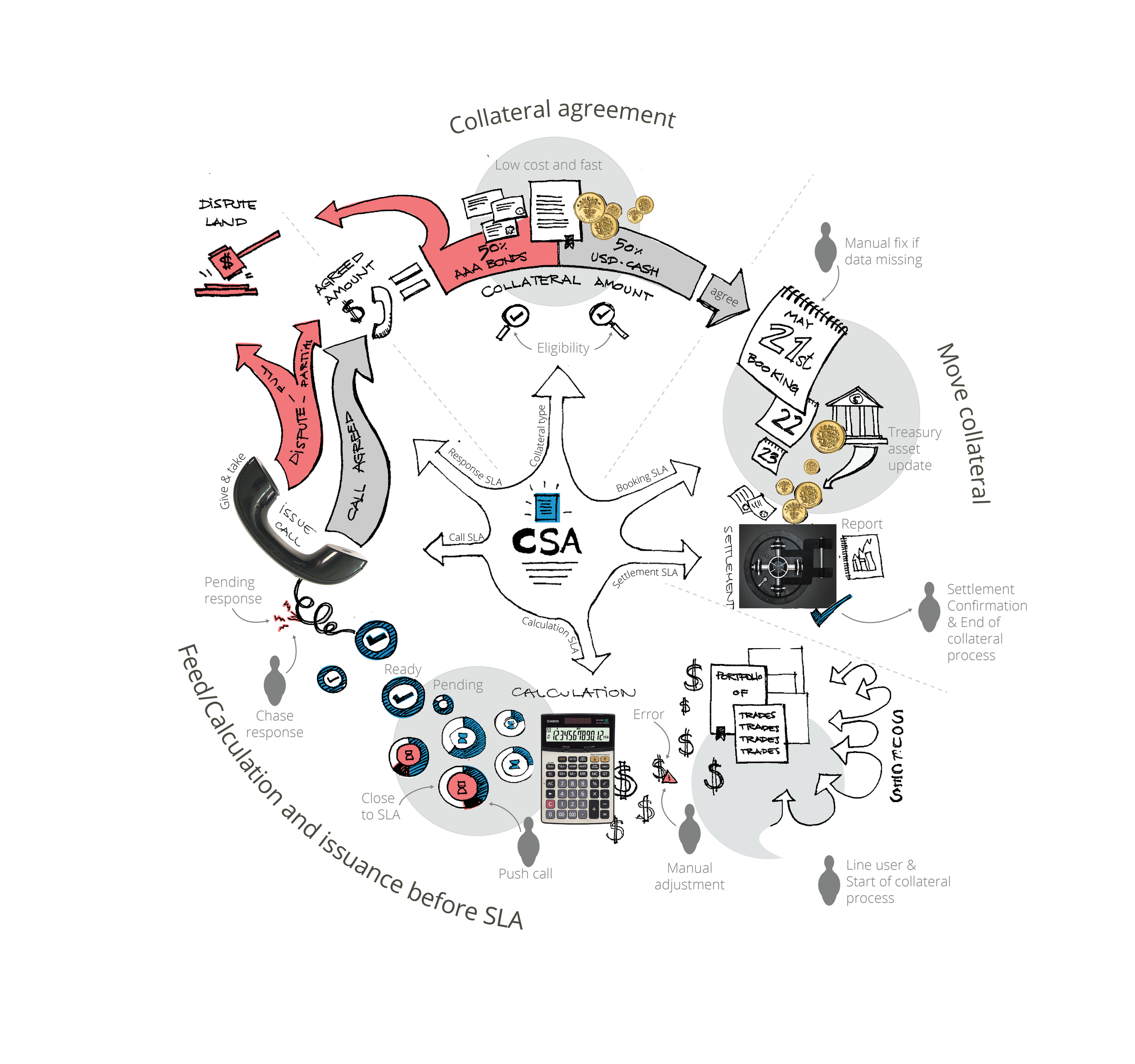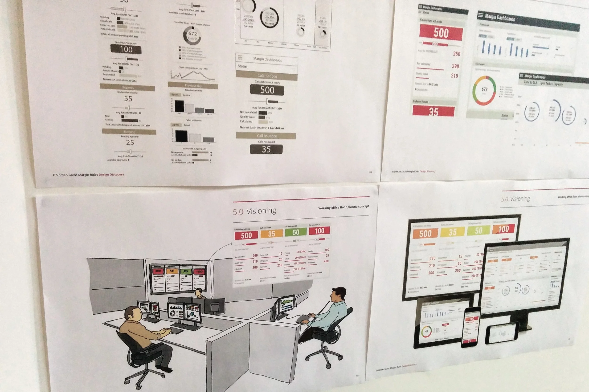 Sketches of the screens primary platform screens, such as, Margin Disputes, Margin calculation and calls status, Dashboards for the process overview and team workflow.